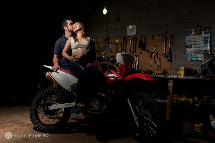 O casal escolheu envolver paixões nesse ensaio, claro além da paixão principal que é o João: a Nochaila tem sua família na Ermida e fotografamos lá no Morro da Santa Cruz e na Oficina da sua família; o Júnior é apaixonado por trilha de motos. Quando junta todos esses elementos que o casal ama o ensaio flui naturalmente e com muita alegria, descontração e amor.